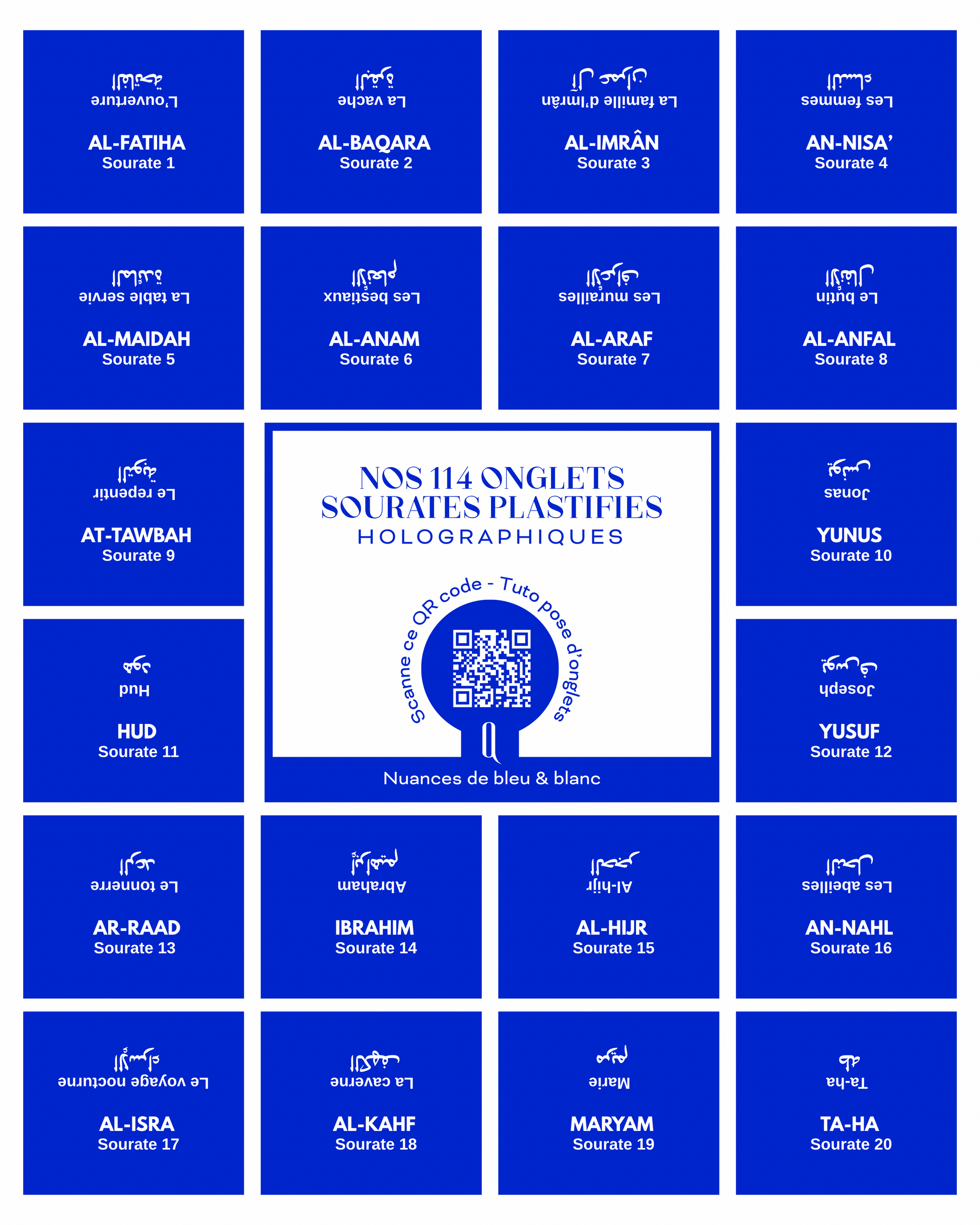 Onglets sourates plastifiés holographiques • Nuances de bleu & blanc